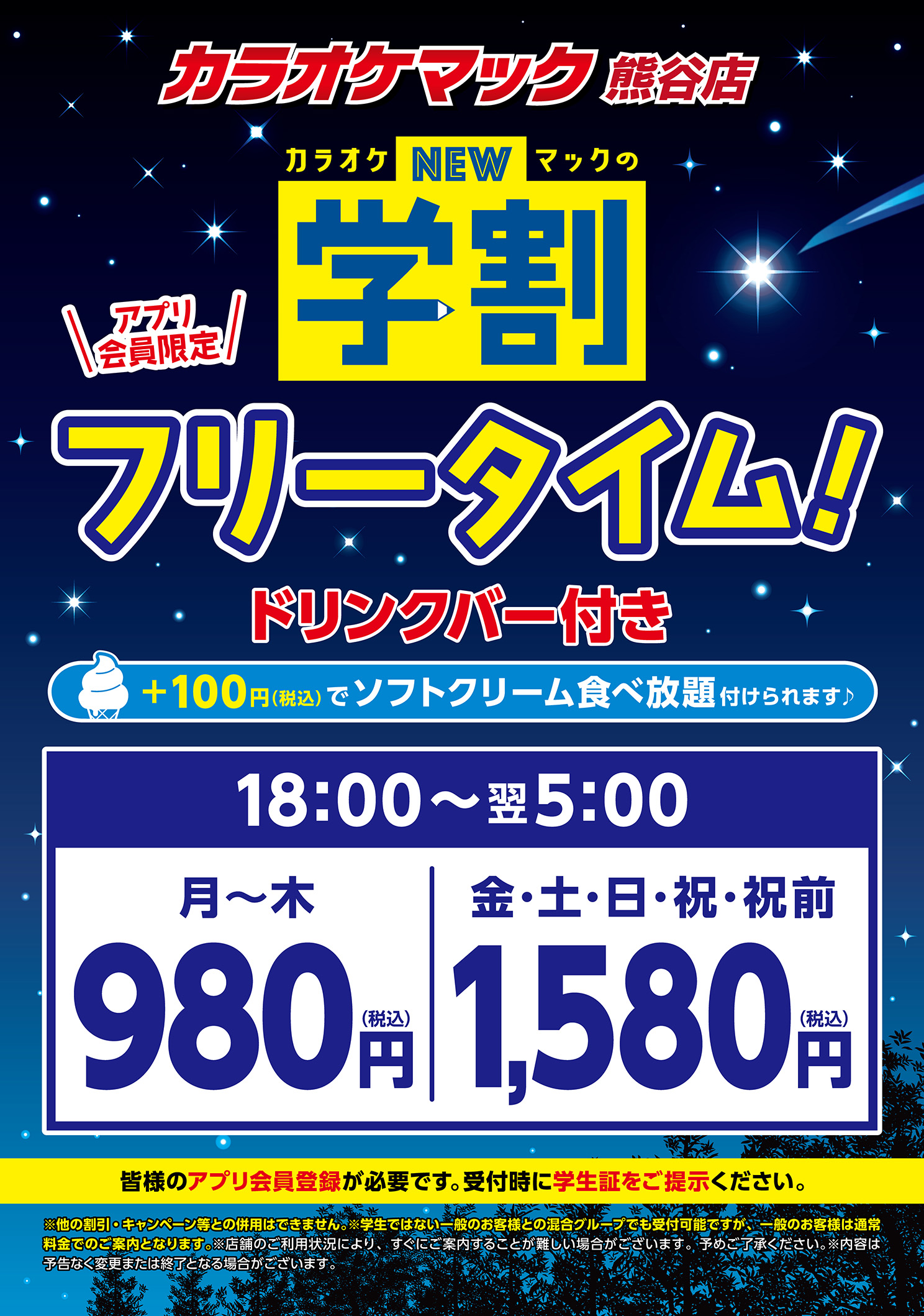 | フリータイム 18:00~翌5:00 | 980円 | 2,300円 |